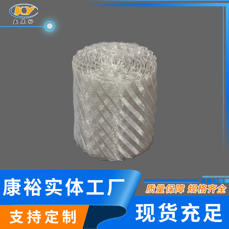 1.jpg  金屬絲網(wǎng)填料是目前世界各國應(yīng)用比較廣泛的填料,它是由若干平行直列的金屬波紋網(wǎng)片排列組成的圓盤狀填料。它具有比表面積大、孔隙率大、重量輕;氣相通路傾角小、有規(guī)則、壓降低;徑向擴(kuò)散良好、氣體接觸充分等特點(diǎn)。