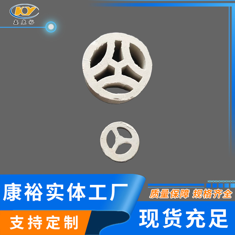 陶瓷三丫環(huán)因其優(yōu)異的工藝加工條件,如原料優(yōu)選,真空擠壓成型以及嚴格控制燒結(jié)工藝中的火焰氣氛,使得陶瓷三丫環(huán)具有瓷質(zhì)致密,色澤均勻,機械強度高,耐壓力沖擊,抗熱震性能好,耐搬運不破損的優(yōu)點。同時陶瓷三丫環(huán)結(jié)構(gòu)空間性能好,床層使用通氣量大、比表面大、氣液分布均勻、阻力小、壓降低、強度高、氣液傳質(zhì)性能比一般填料好。