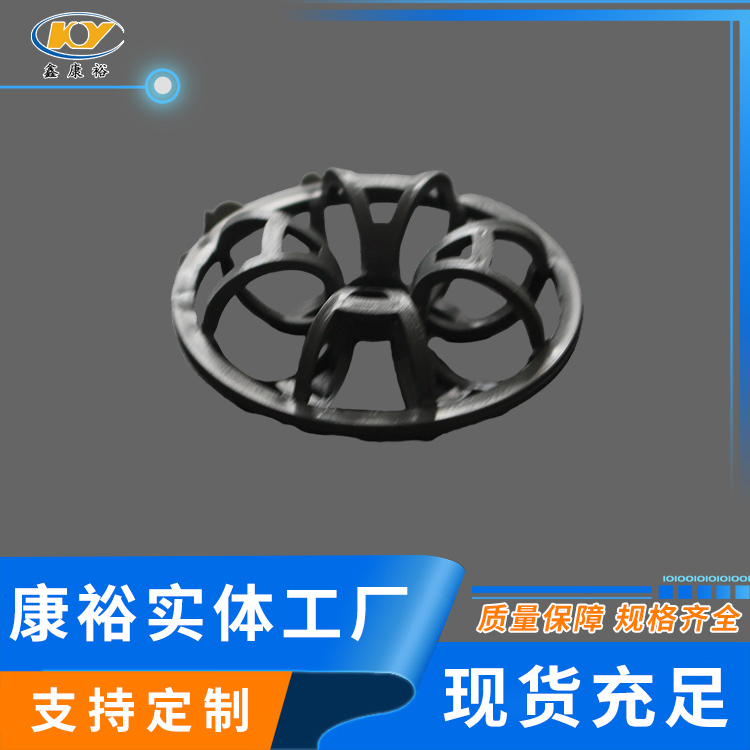 塑料花環(huán)填料早是由美國(guó)A.J.Teller于1954年研制開(kāi)發(fā)出來(lái)的,故而常稱之為泰勒花環(huán)(TellerRosette)。由于填料的空隙處能有較高的持液量,可使塔內(nèi)液體的停留時(shí)間較長(zhǎng),從而增加了氣液兩相的接觸時(shí)間,提高了填料的傳質(zhì)效率?!』ōh(huán)填料也稱梅花環(huán)填料塑料花環(huán)填料是由12個(gè)小圓環(huán)按徑向排列而組成的一個(gè)大扁球體,很類似于一個(gè)螺旋形彈簧首尾相接繞成的一個(gè)圓球體。有的小圓呈A字;有的在小圓和大圓邊沿還帶有齒;有的外圍沒(méi)有大圓圈,只有里面的小圓組成等,客戶可根據(jù)各自的要求訂購(gòu)不同種類的花環(huán)。